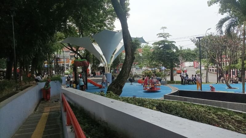 Sekarang kondisinya berbeda. Setelah penataan ulang, taman mulai dipakai untuk berbagai aktivitas ringan. Anak-anak tetap bisa bermain, sementara orang dewasa punya ruang buat duduk santai, ngobrol, atau sekadar ngadem.